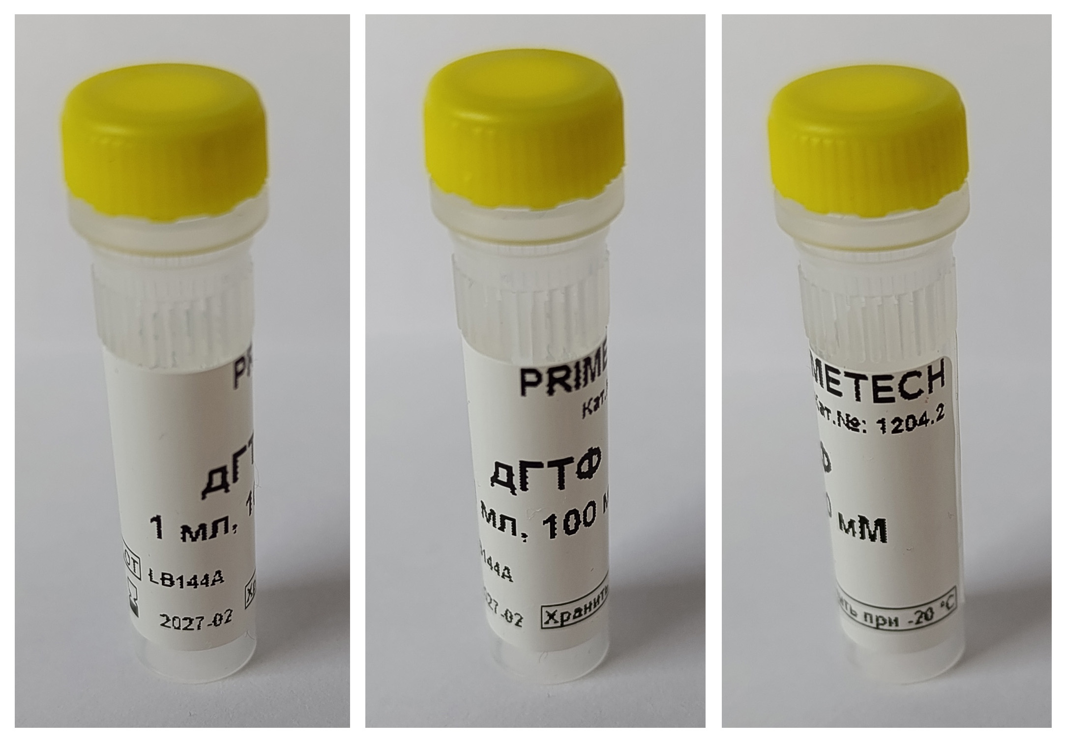 дГТФ представляет собой 100 мМ раствор индивидуального 2′-дезоксинуклеозид-5'-трифосфата в виде натриевой соли в высокоочищенной воде с доведением рН до 7.3 – 7.5.