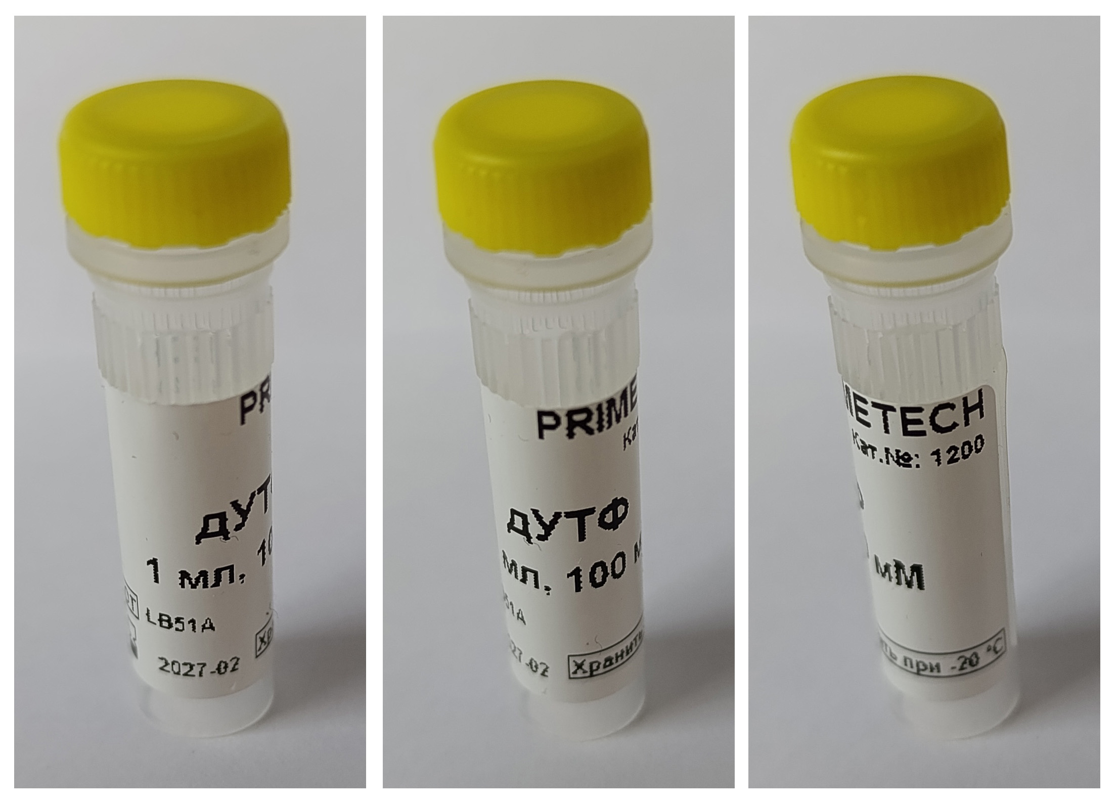 дУТФ представляет собой 100 мМ раствор индивидуального 2′-дезоксинуклеозид-5'-трифосфата в виде натриевой соли в высокоочищенной воде с доведением рН до 7.3 – 7.5.