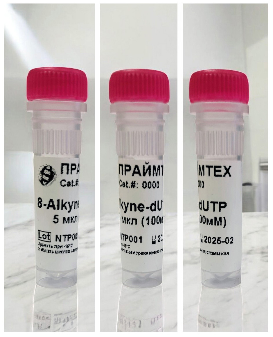 Нуклеозидтрифосфат 8-Алкин-дУТФ представляет собой модифицированный по 5-му положению пиримидинового цикла 2'-дезоксиуридинтрифосфат. Модифицирующий фрагмент содержит концевую ацетиленовую группу, присоединенную к основанию через 8-атомный линкер посредством тройной С–С-связи.