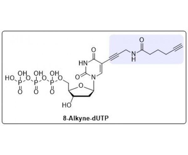 8-Алкин-дУТФ используется для введения в ДНК нуклеозидов с концевыми ацетиленовыми группами в процессе ферментативного синтеза. Полученная модифицированная ДНК может быть в дальнейшем функционализирована с помощью клик-реакции азид-алкинового циклоприсоединения.